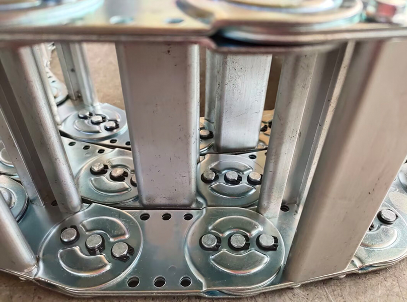 It is composed of chain plate, support plate, pin and other components, strong structure, large bearing capacity, and greatly prolonging the service life of TL steel tow chain through heat treatment and anti-corrosion treatment. Due to the excellent protection and stable working condition performance of TL steel tow chain, it is widely used in machine tools, mines and other mechanical equipment, and plays a traction and protection role in cables, oil pipes, gas pipes, water pipes and air pipes. Production can be customized according to customer needs.